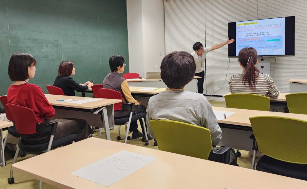冒頭に理事長からご挨拶をいただき、続けて次長から「SHIP10周年のあゆみと、次の10年に向けて」、「SHIPスタッフの防災研修」を説明。特に防災研修では、職場で発災したら72時間待機するのが原則であること、3階が一時滞在施設、4階が大崎駅帰宅困難者協議会の作戦本部になることなど、被災者ではなく、受け入れ施設側の心構えを共有しました。