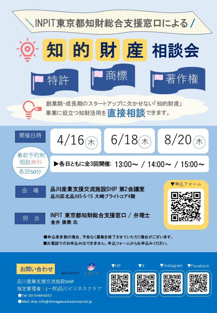 INPIT東京都知財総合支援窓口による知的財団相談会